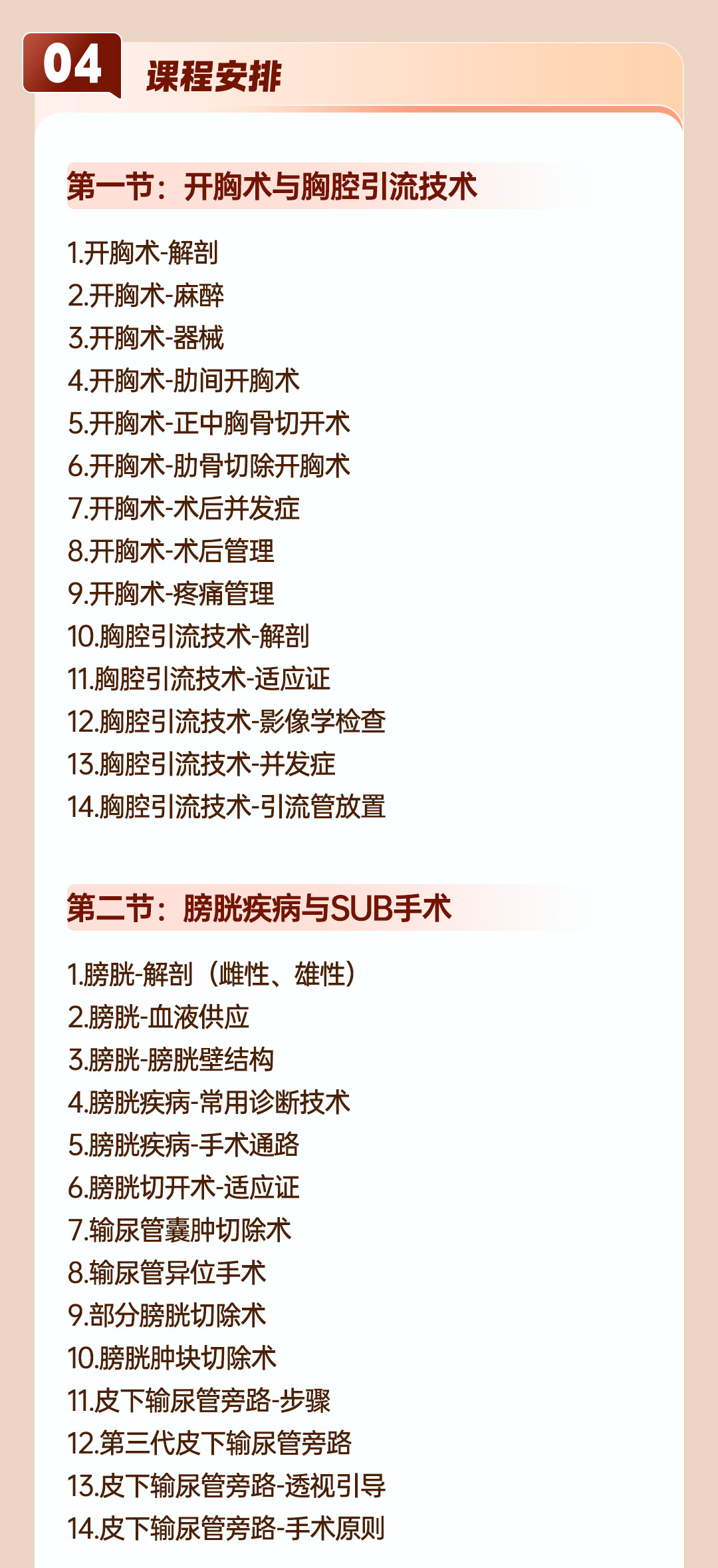 涵盖临床常用高阶手术技术,特别赠送SUB、胸腔引流术实操教学!报名后提供5年回放。